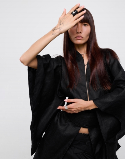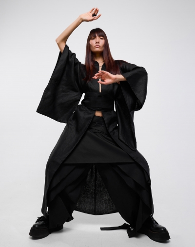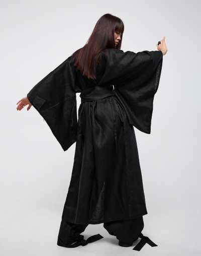 Кимоно версия 3.0 подарит вам прямую походку с высоко поднятой головой. Ее оценят все до одного, кто действительно хотел примерить дыхание Японии на себе, через кожу, каждой клеточкой кожи. Воротник стоечка, кармашки в рукавах на замочке для всяких важных мелочей. Можно носить как платье без лишних заморочек, можно носить, надевая под низ штаны али-баба, с этим кимоно можно делать, что угодно.
