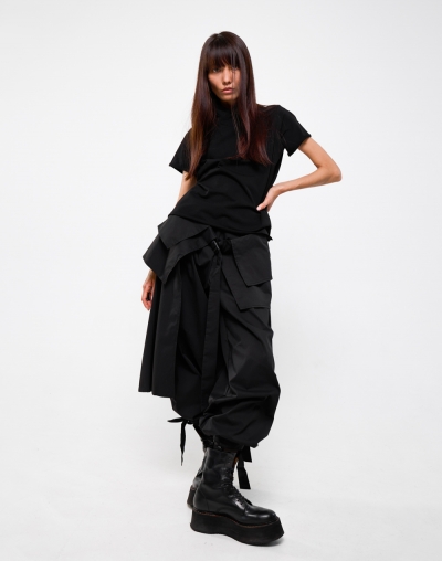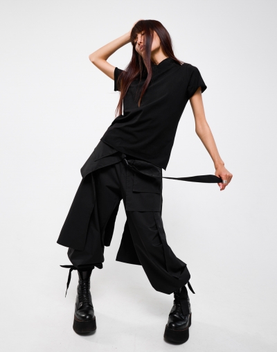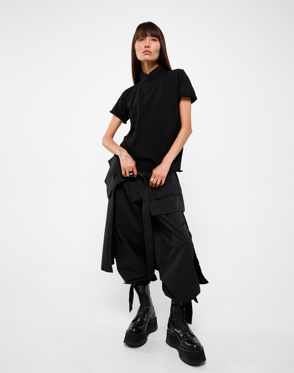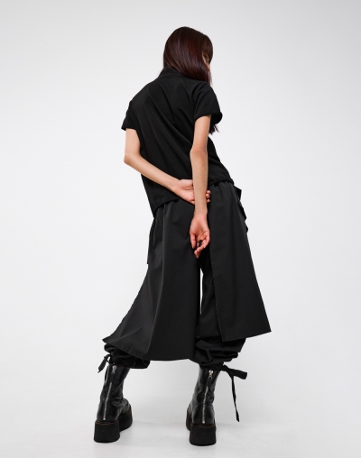 Хакама (яп. 袴) — традиционные японские длинные широкие штаны в складку, похожие на юбку или шаровары. Исторически их носили мужчины. Мы же переиначили их на современный лад, полностью изменили крой, оставив только концепцию и силуэт. Наши Хакама- это сумасшедше и многослойные графитовые штаны/юбка со съемным поясом. Эти трансформеры из хлопка - находка для истинных гурманов одежды, любителей комфорта и легкости, для ценителей японской сложности кроя. Штаны подойдут как девушке с любым телосложением, так и парню ростом 160-180 см. Снизу у изделия есть ленты, которые фиксируются на щиколотках или под коленями, регулируя длину.
