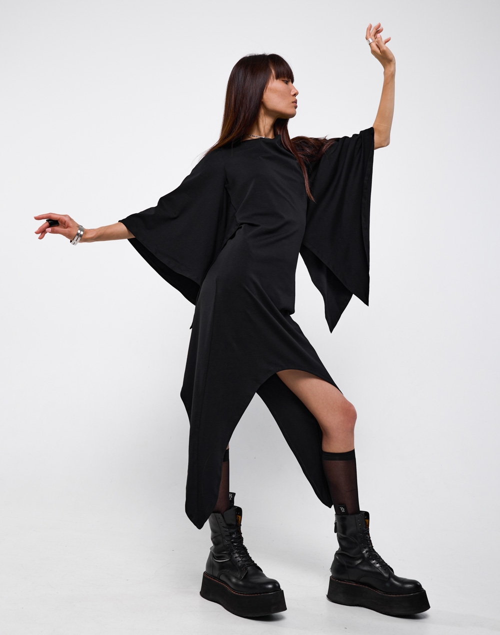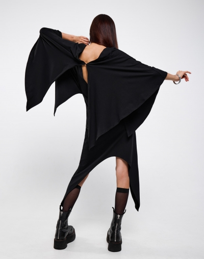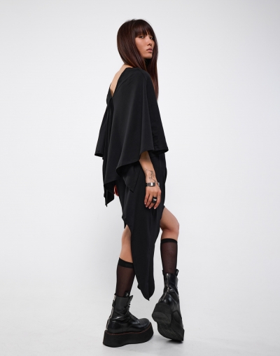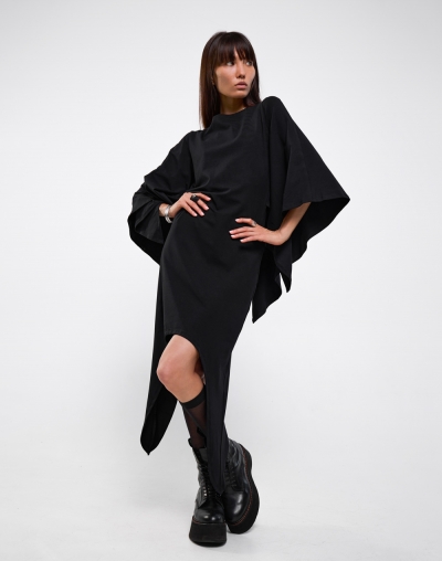 Платье с симметричными удлиненными концами по бокам, без рукавов. Все гениальное - просто.