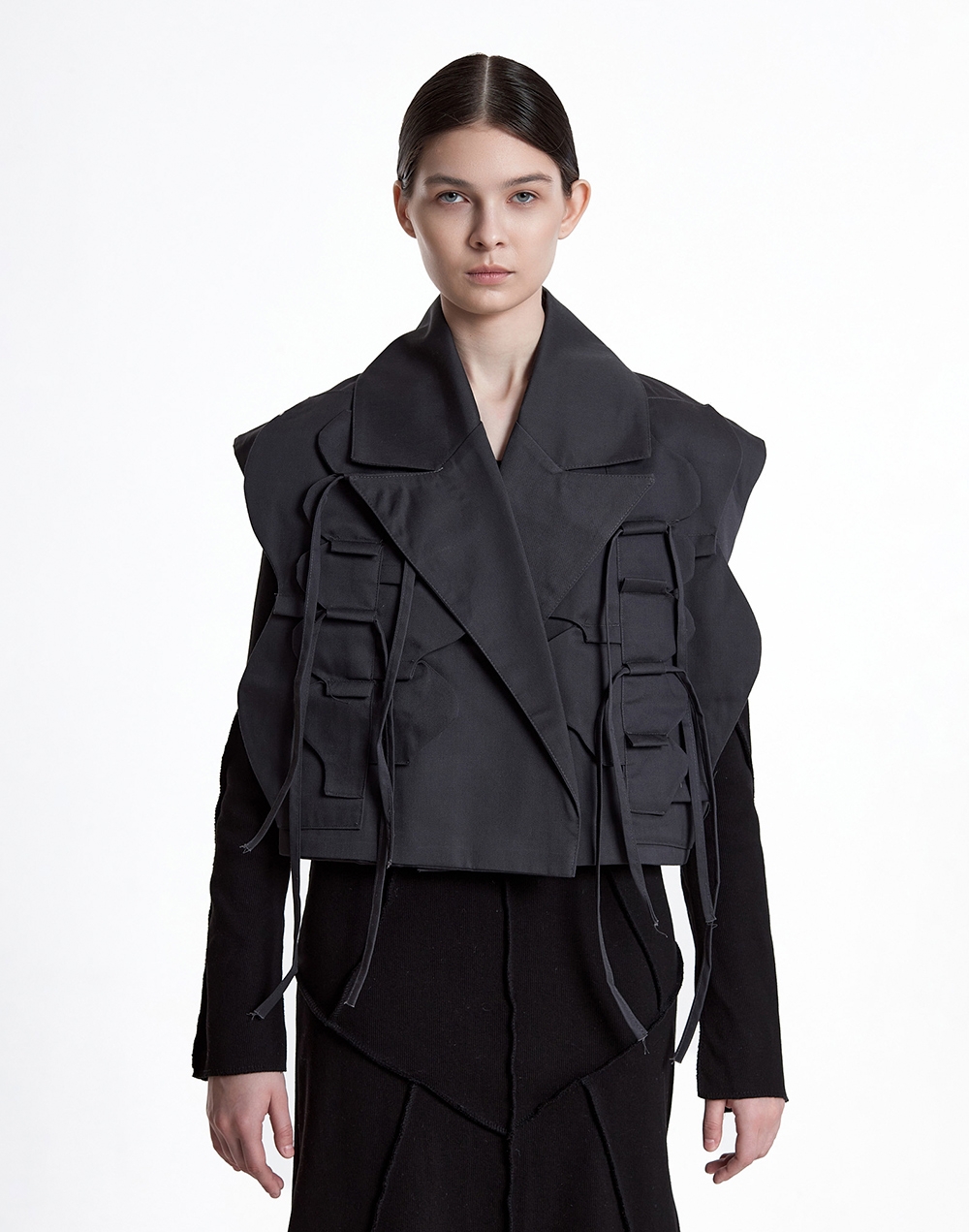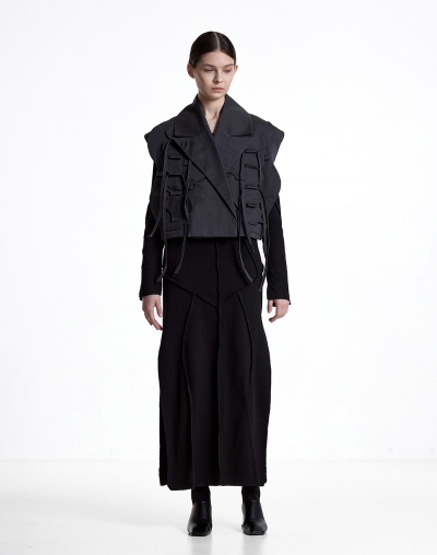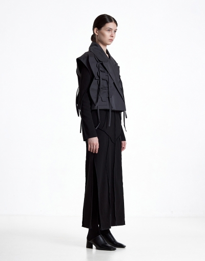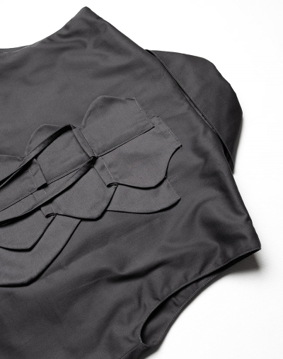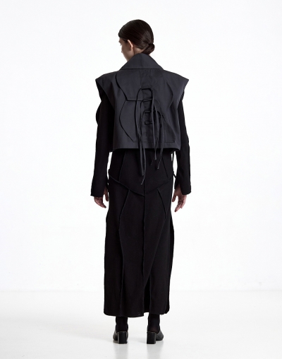 Жилет из хлопка с широкими лацканами и декоративными элементами в виде лепестков лотоса и завязок
