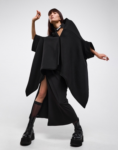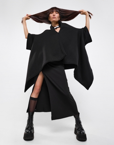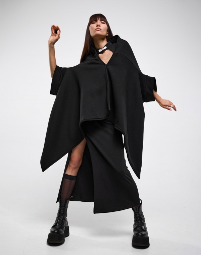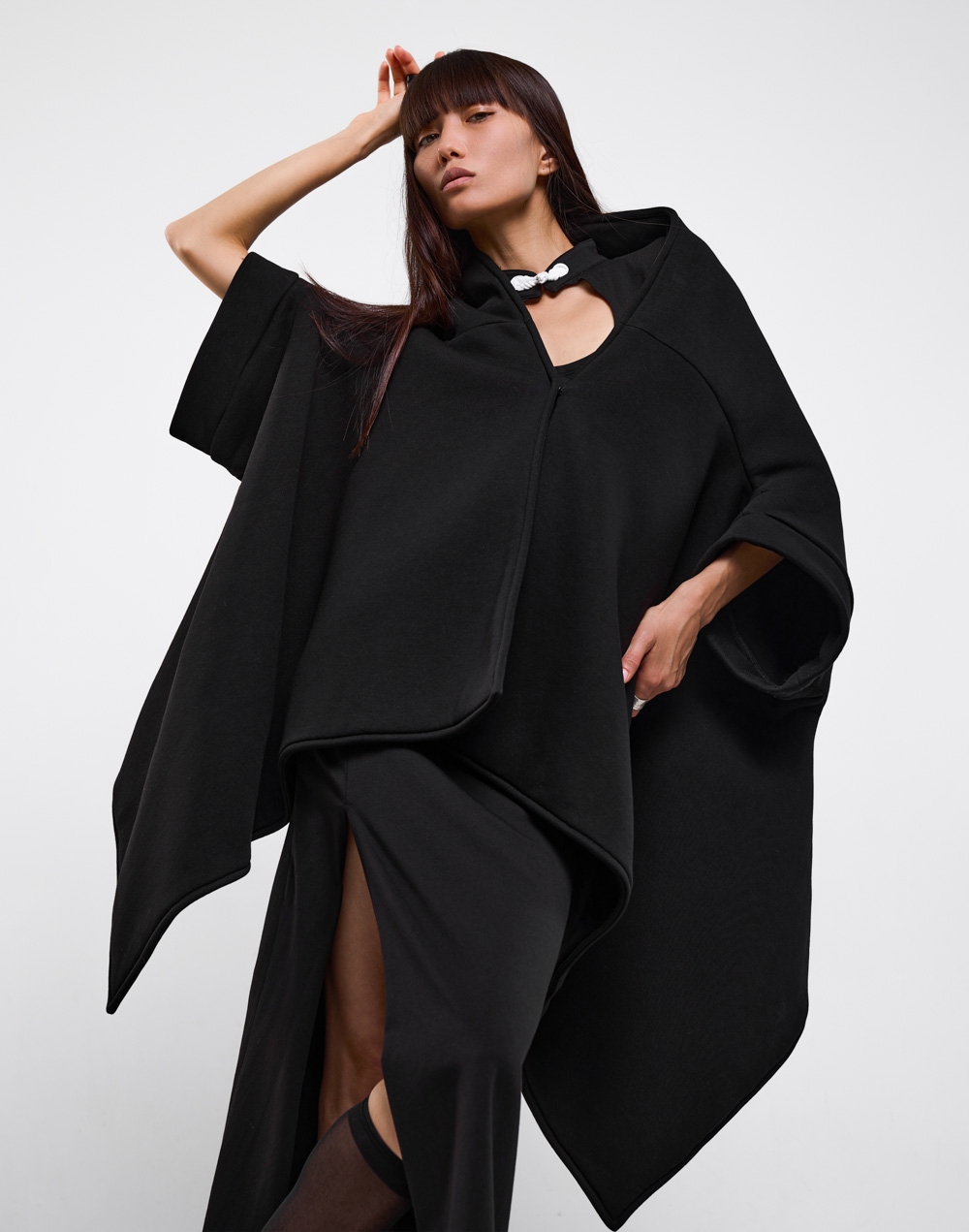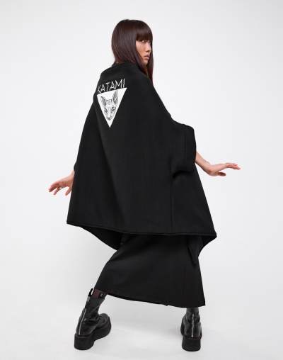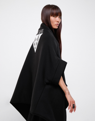 Накидка из мягкого трикотажа с фирменным логотипом бренда на спине.