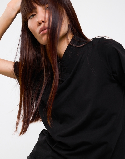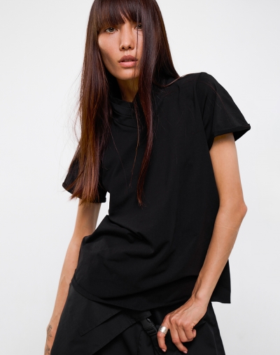 Базовая футболка с тройным воротничком из мягкого трикотажа.