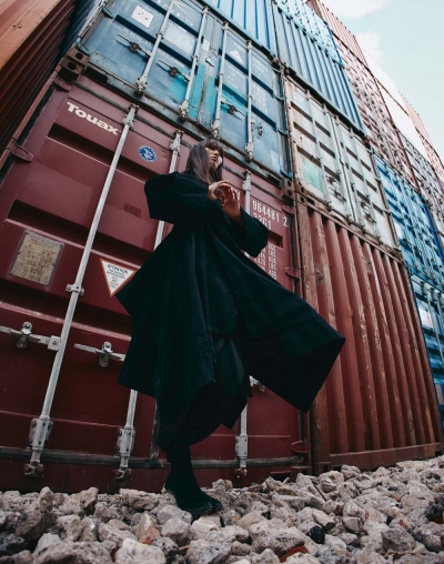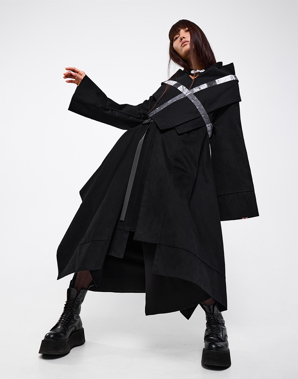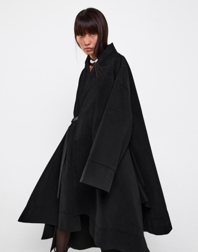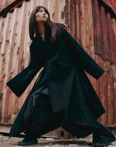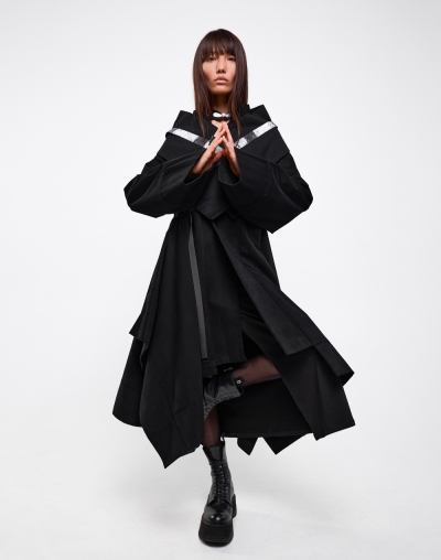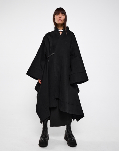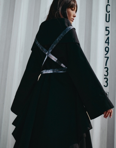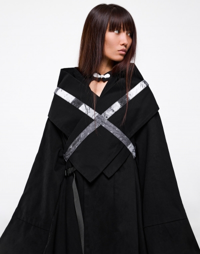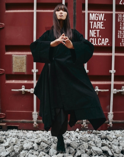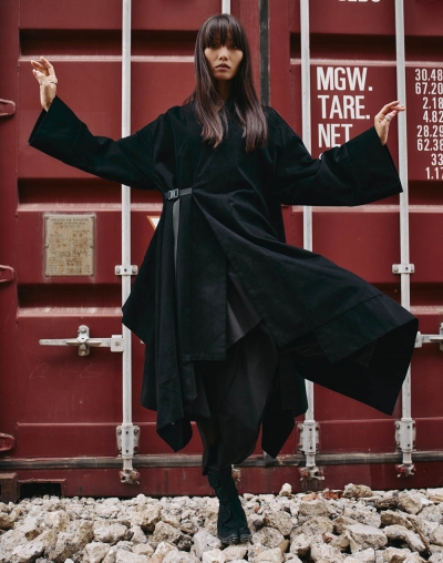 Koi No Yokan - японская концепция о неизбежной любви, и это кимоно воплощает ту самую уверенность в предчувствии неизбежного - любви, зимы, перемен. Кимоно- плащ из плотного джинсового твила, его подол - два квадрата, которые формируют объём даже в полной неподвижности. Широкий съемный воротник с длинными лентами охватывает плечи, собирая всё в стойку. Вещь самурая, который решил бросить всё и стать художником!