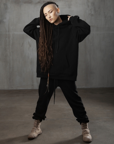 Базовая черная оверсайз толстовка из плотного футера с начесом, с глубоким капюшоном, вместительным передним карманом и контрастным логотипом KATAMI на спине. Для ценителей тепла и абсолютного комфорта!
