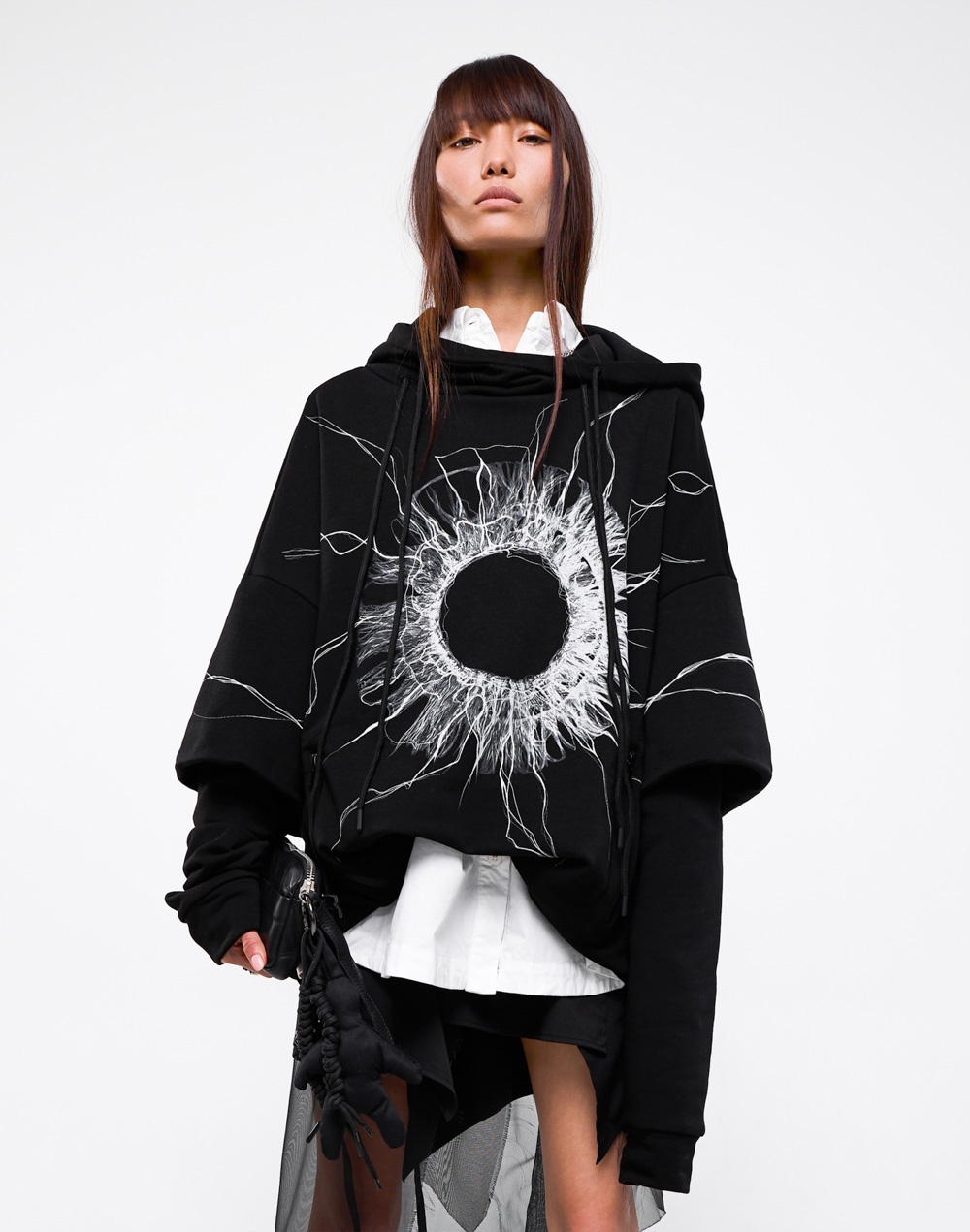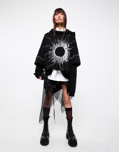 Могут ли глаза увидеть больше, чем просто мир вокруг нас? Худи представляет собой переход от реальности к мечтам, двойной рукав символизирует защиту и самурайскую силу, а мощный принт глаза по центру - зеркало души.