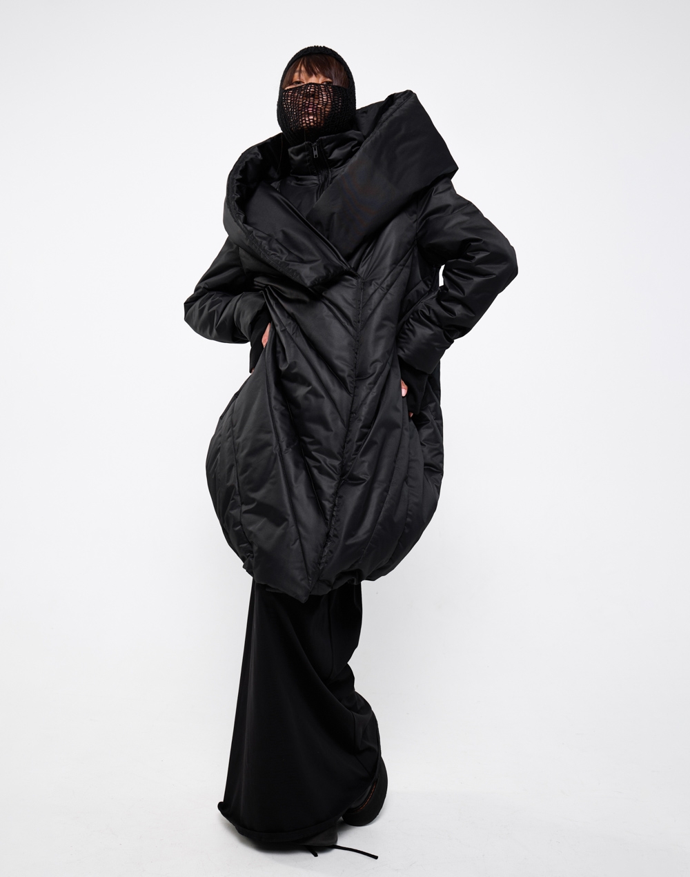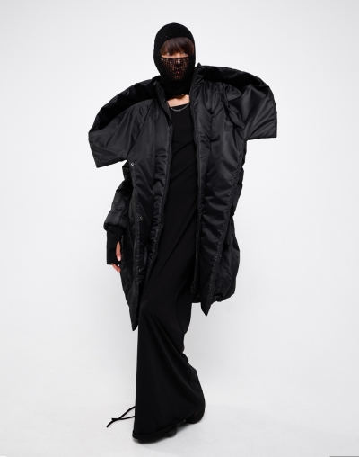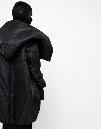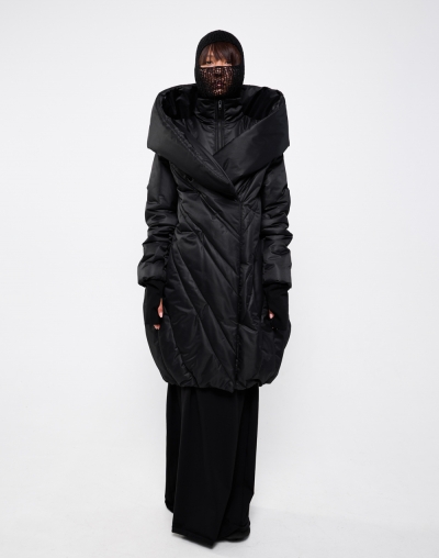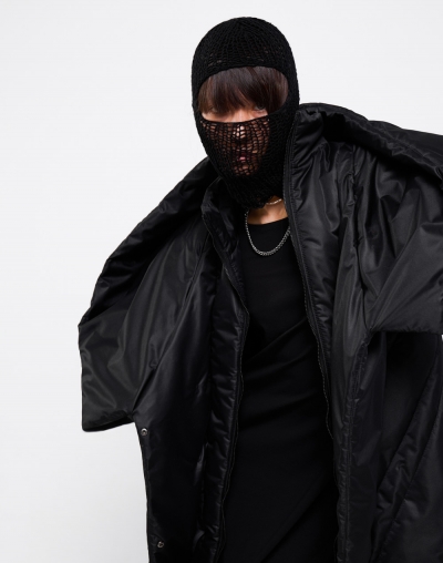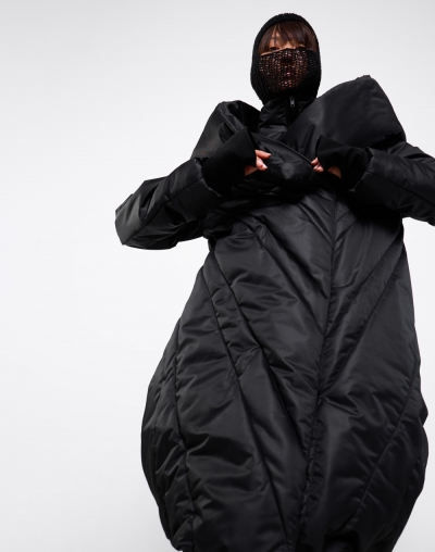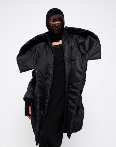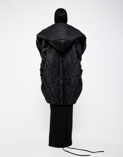 Непродуваемый пуховик с глубоким капюшоном. Имаго - это научное название процесса перерождения из куколки в бабочку. Пуховик задуман в форме скрученного листа дерева: в таких тоже живут куколки бабочек. Это намек на то, что зима не может длиться вечно. А стежка в виде листа всегда будет напоминать вам о теплых летних деньках.