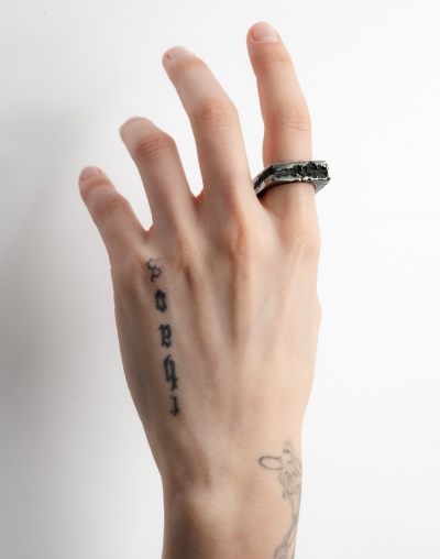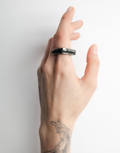 Кольцо необычной формы выполнено из нержавеющей стали методом ручной ковки. Чернение маслом. Каждое изделие абсолютно уникально с неповторимой текстурой.