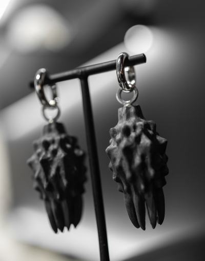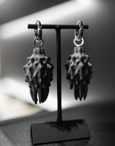 Серьги из бисквитного фарфора с серебряными креплениями. Объект на грани природы и архитектурной конструкции.