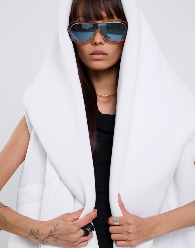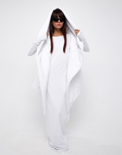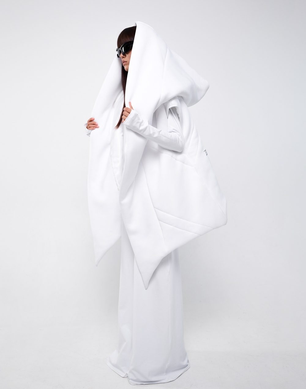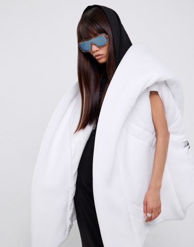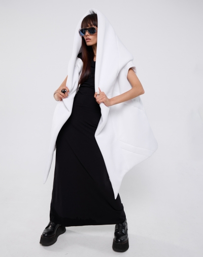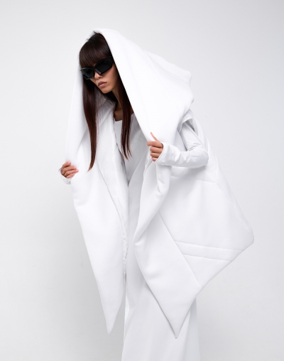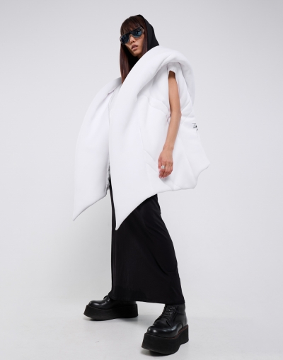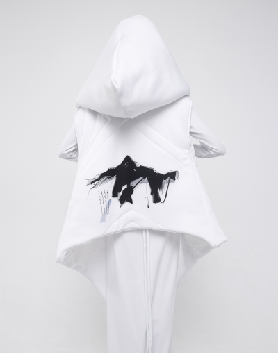Гималаи в переводе с санскрита означает "обитель снегов". Белый жилет Katami Wear – про настоящий минимализм, четкость линий, простоту формы. Объемный мягкий жилет из неопрена с большим капюшоном. Необычный принт на спине – настоящий рисунок, сделанный художником с помощью пера и угля, бережно перенесенный на ткань.
