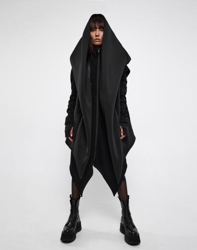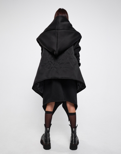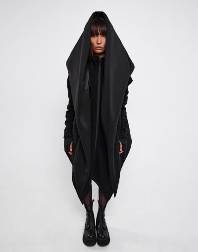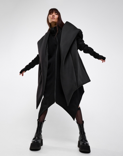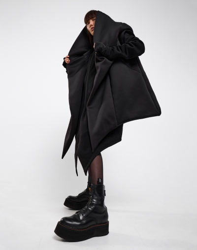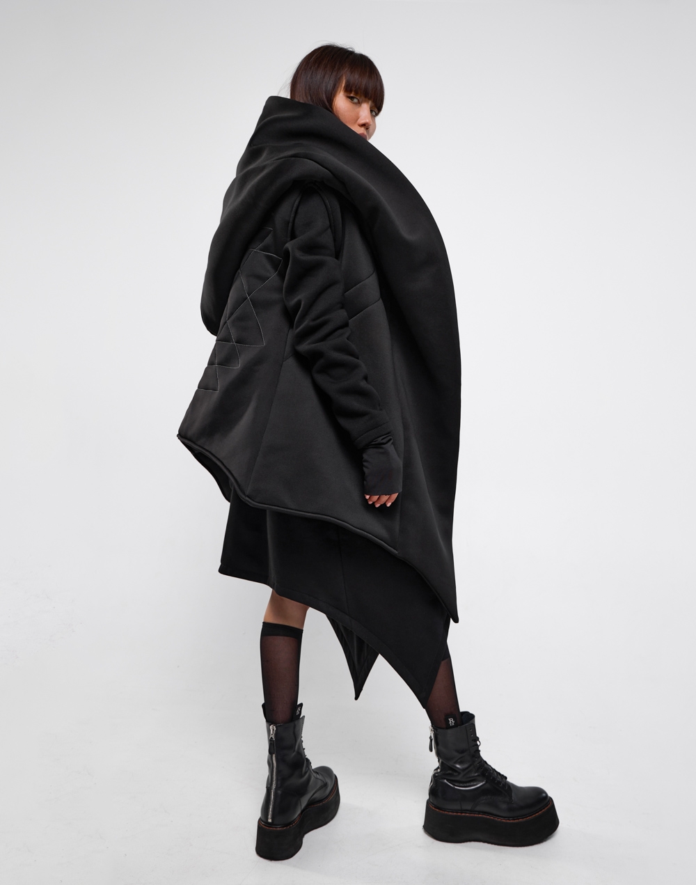 Тулуп - это 3 в 1. Верхняя часть - это объемная накидка из плотного приятного материала с величественным капюшоном. Ниже - уютная толстовка с подкладкой и практичными карманами. Носите их совместно для завершенного образа или раздельно для разнообразия. Тулуп - это искусство геометрии, выраженное в идеальной гармонии.